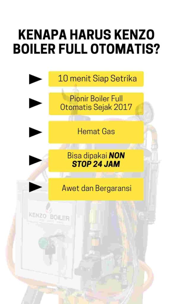 Jika Anda mencari boiler setrika uap yang kuat, awet, dan minim masalah, KENZO BOILER adalah pilihan yang tepat.